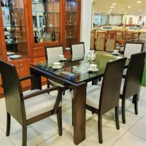 Juego De Comedor De Madera Tornillo De 6 Sillas Modelo Linen Color Nogal Vidrio De 15mm