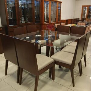 JUEGO DE COMEDOR 06 SILLAS + BASE TABLERO MADERA TORNILLO