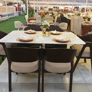 Juego De Comedor De Madera Tornillo Tablero De Piedra Sinterizada De 6 Sillas