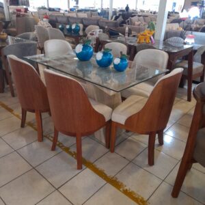 Juego De Comedor Base Mármol 6 Sillas Modelo Vintage Con Respaldo Madera