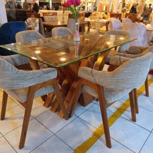 JUEGO DE COMEDOR DE 06 SILLAS + BASE MADERA MODELO «W»