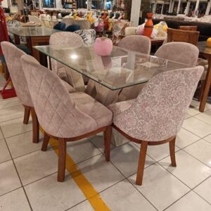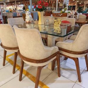 JUEGO DE COMEDOR DE 06 SILLAS 100% MADERA TORNILLO + BASE DE MÁRMOL