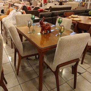 JUEGO DE COMEDOR 06 SILLAS + BASE TABLERO MADERA TORNILLO